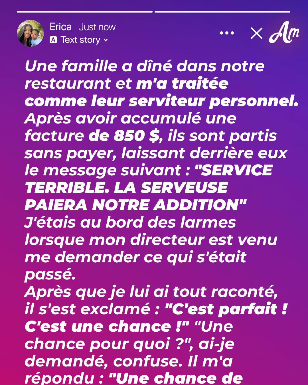 La famille me faisait constamment claquer des doigts comme si j’étais un chien, exigeant des choses comme des remplissages d’eau avant même que leurs verres ne soient à moitié vides.
